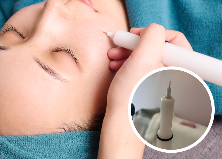エレクトロポレーション(電気せん孔)により 有効成分を真皮層まで確実に流し込む。