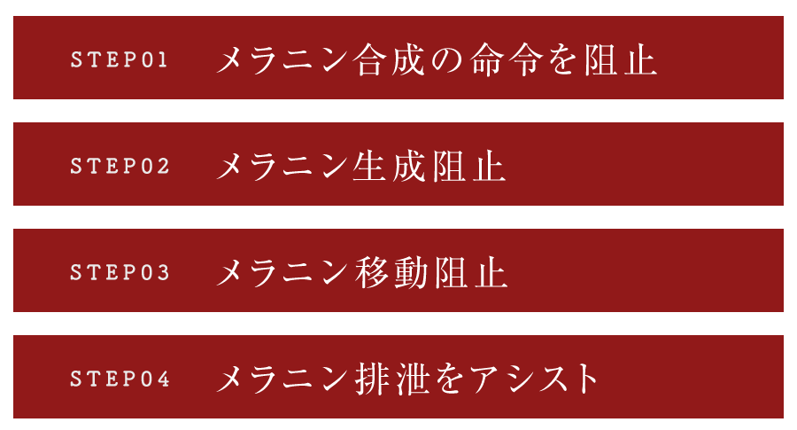 シミの発生を防ぎ、生成させないことを目的としたセラム。シミ発生の4ステップのそれぞれに作用する。